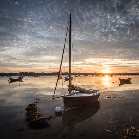 Voilier et doris , un soir d’octobre à Saint-Suliac